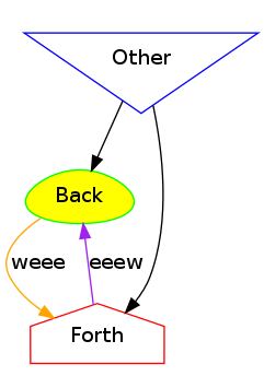 "Forth" -> "Back" [color="purple" label="eeew"];